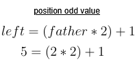 To construct this mapping, it is noted that left child nodes occupy odd positions within the array. Consequently, based on the general expression that defines odd numbers, it is possible to compute the position of the left child using the current position of the parent node. For example, if the parent node is located at position 2, its left child is found at position 5.