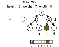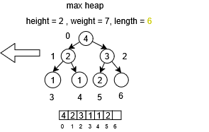 Furthermore, due to its binary growth, it is possible to determine both the height and the weight (number of nodes) of the tree with precision, which facilitates the analysis of its behavior and computational complexity. As shown in the following image, three heap trees of different heights are presented, allowing for an efficient increase in the number of elements stored in the array: