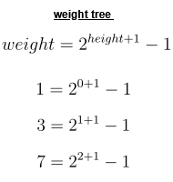 In addition, due to its binary growth, it is possible to accurately determine the height based on the weight (number of nodes) of the tree: